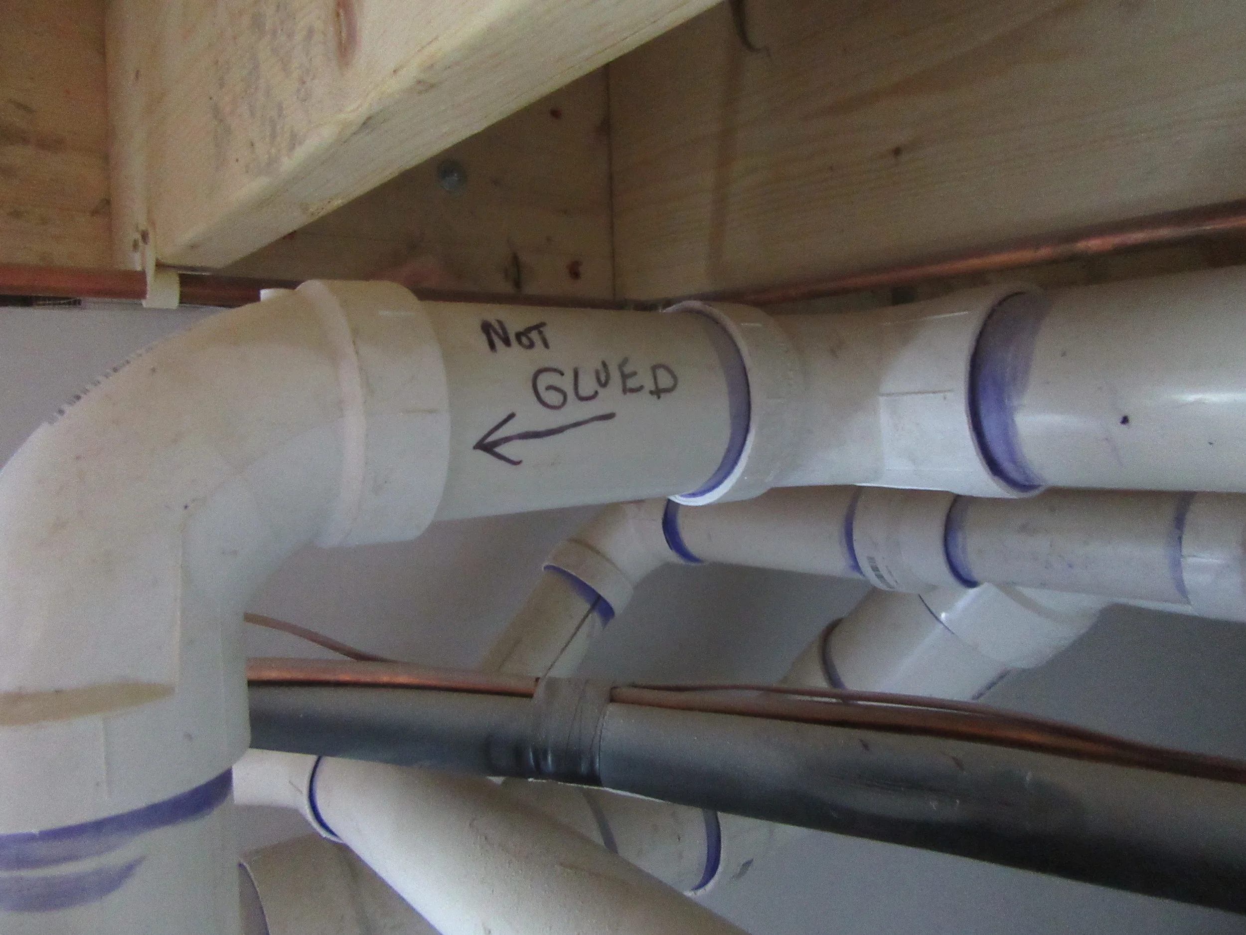 Here we have a plumber who didn’t have enough glue to connect a pipe, and rather than pretend the work was done and hope nobody noticed, he actually wrote on the pipe with a Sharpie to call attention to the issue. Since inspectors can’t pull on each and every pipe to see if they’re loose, there’s a chance I wouldn’t have found the loose pipe here. If only other contractors were so honest and helpful!